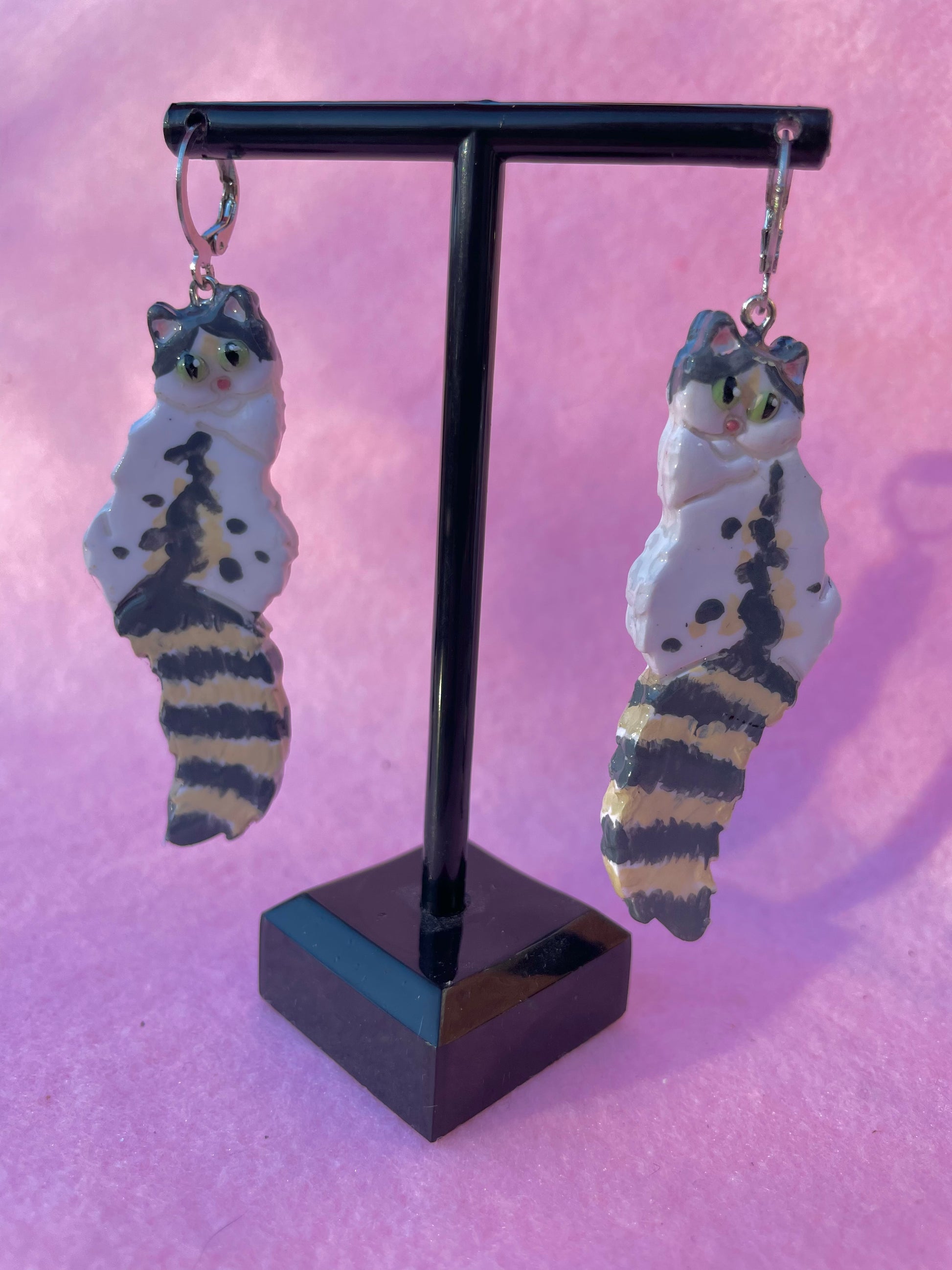 These double-sided polymer clay cats are handmade & handpainted with love by one person! They are durable, lightweight, & topped with glossy protective coat of UV resin.