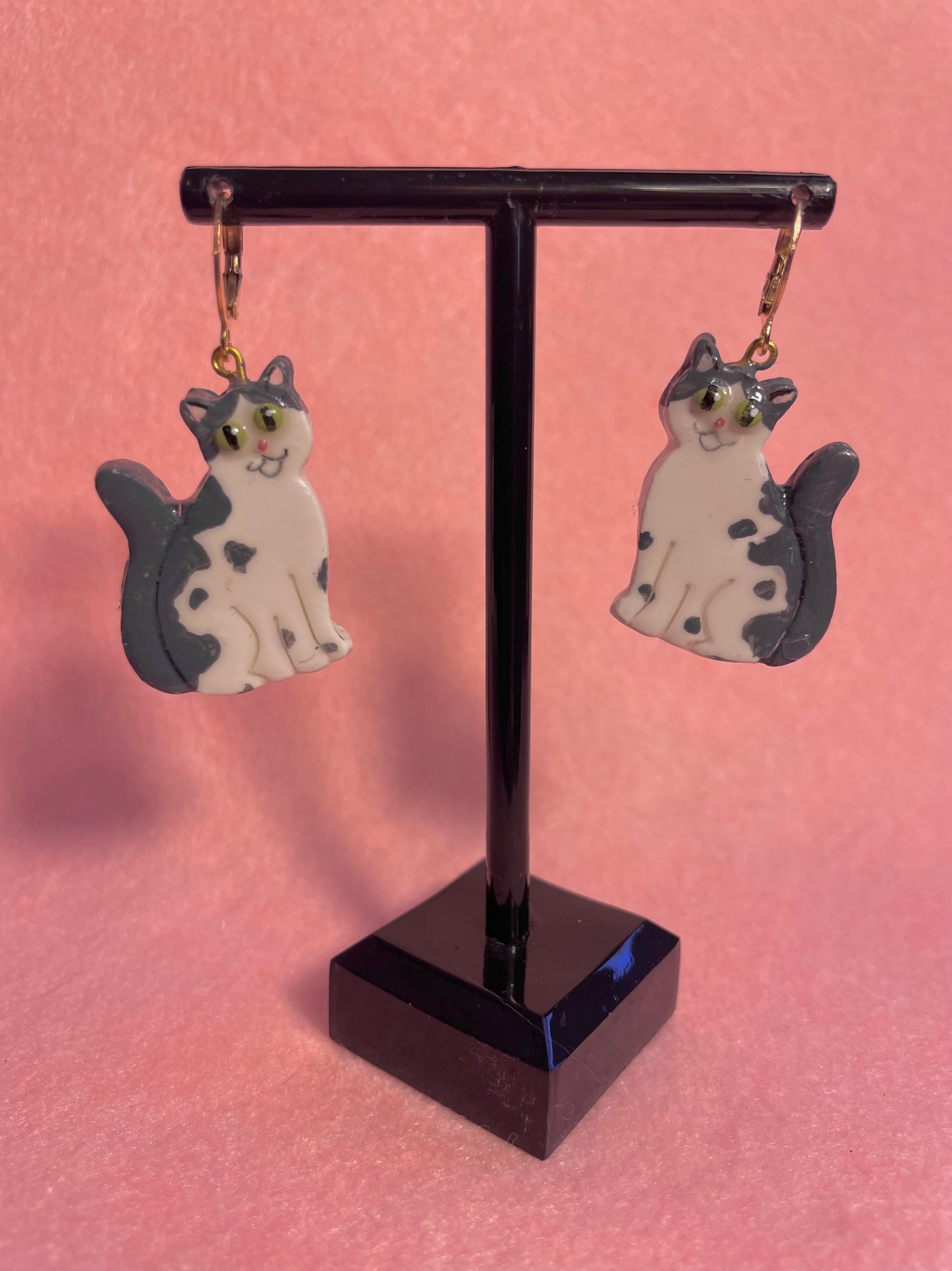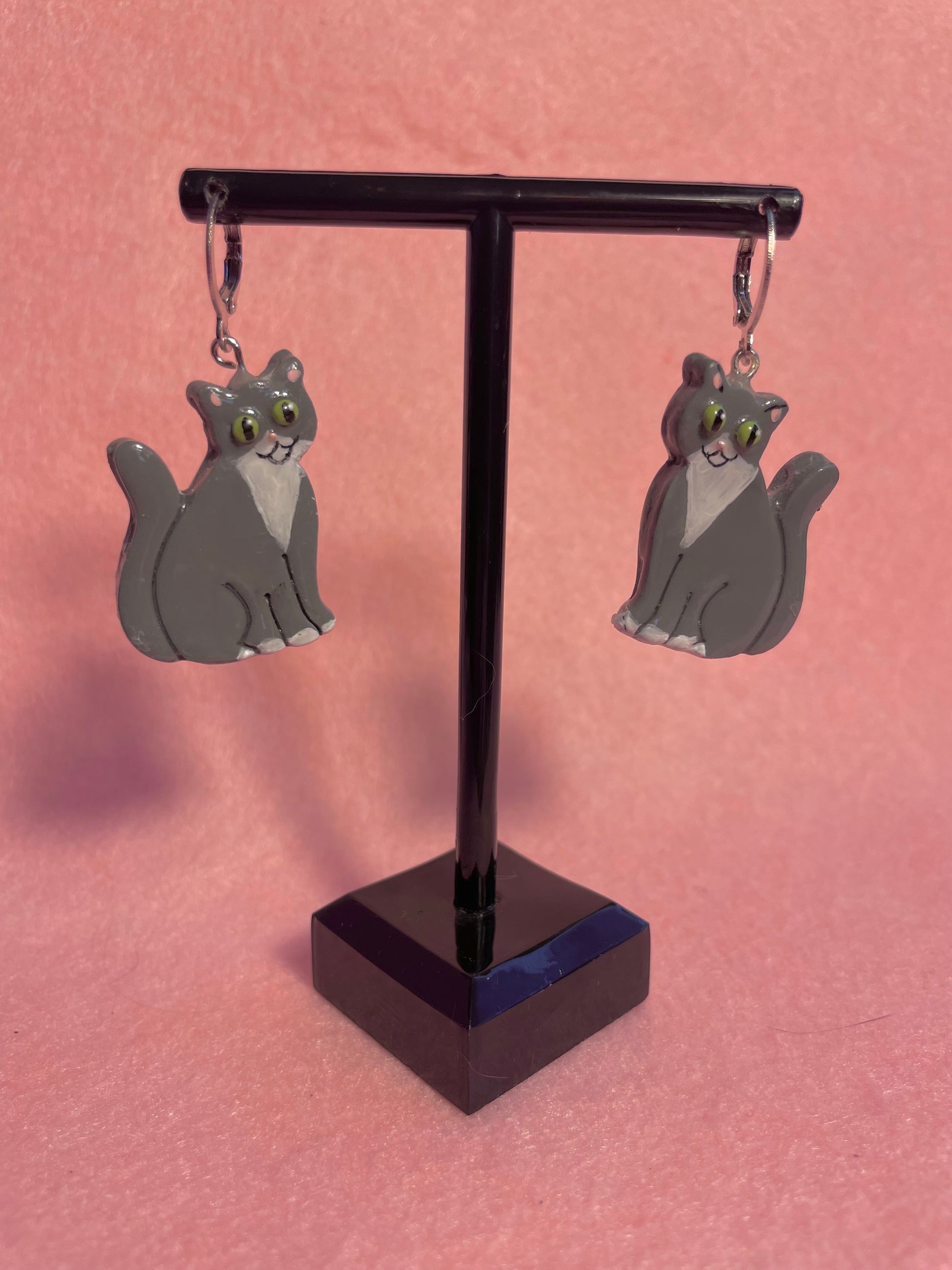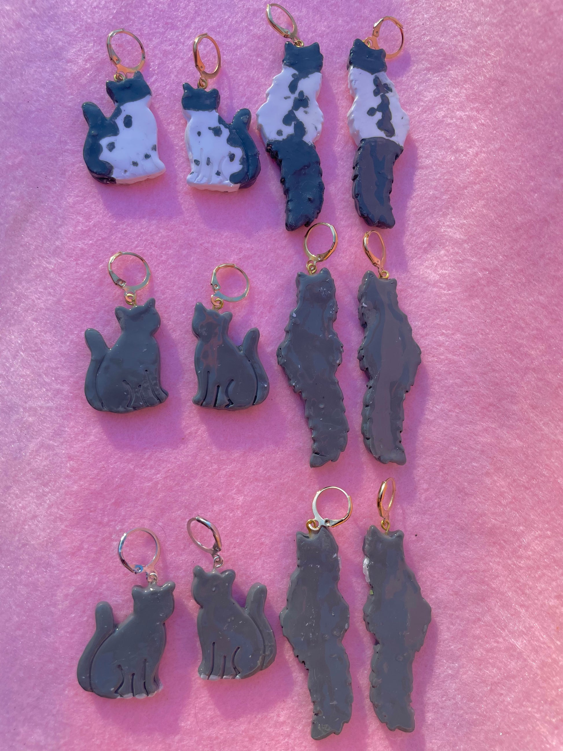 These double-sided polymer clay cats are handmade & handpainted with love by one person! They are durable, lightweight, & topped with glossy protective coat of UV resin.