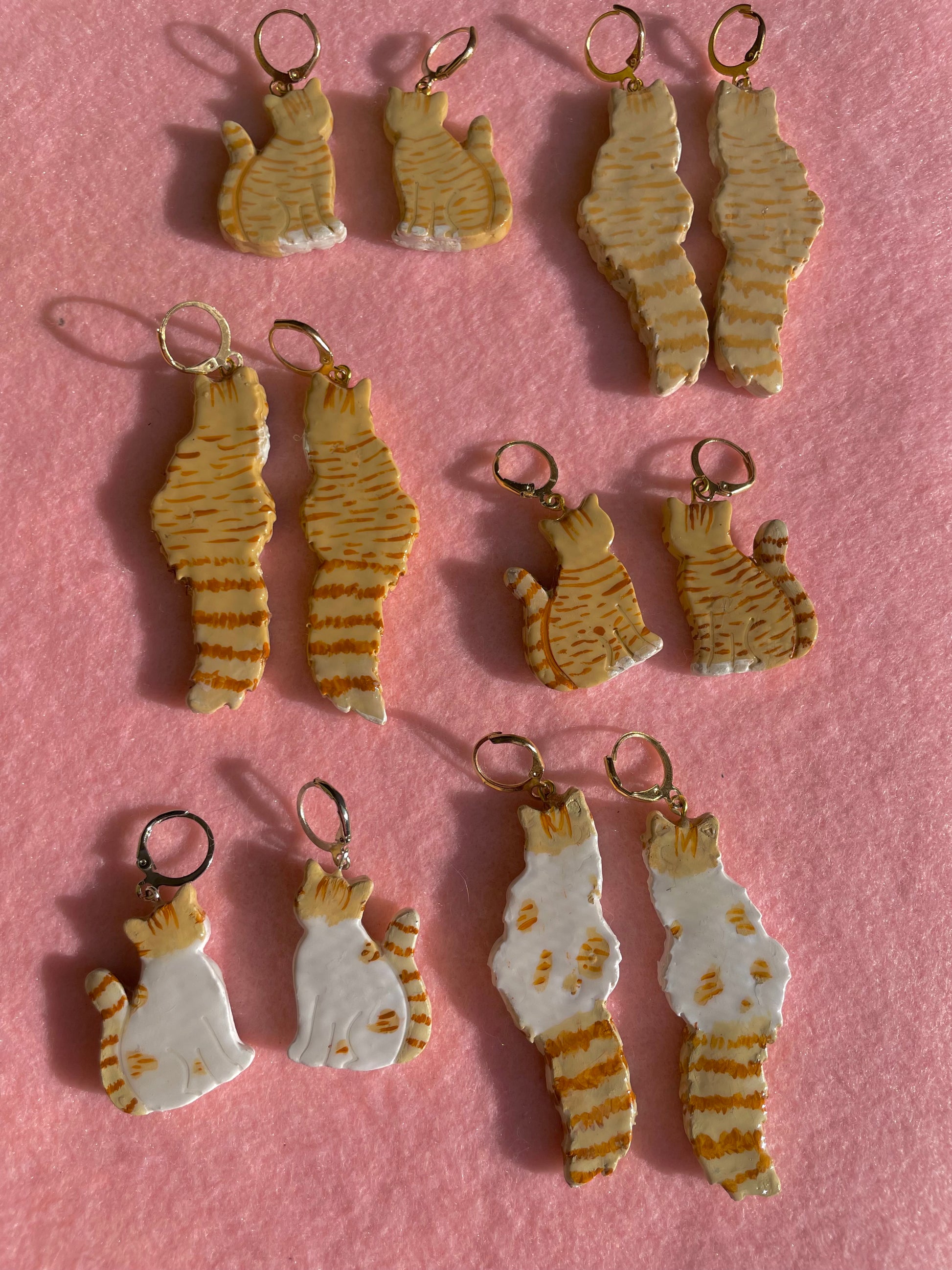 These double-sided polymer clay cats are handmade & handpainted with love by one person! They are durable, lightweight, & topped with glossy protective coat of UV resin.