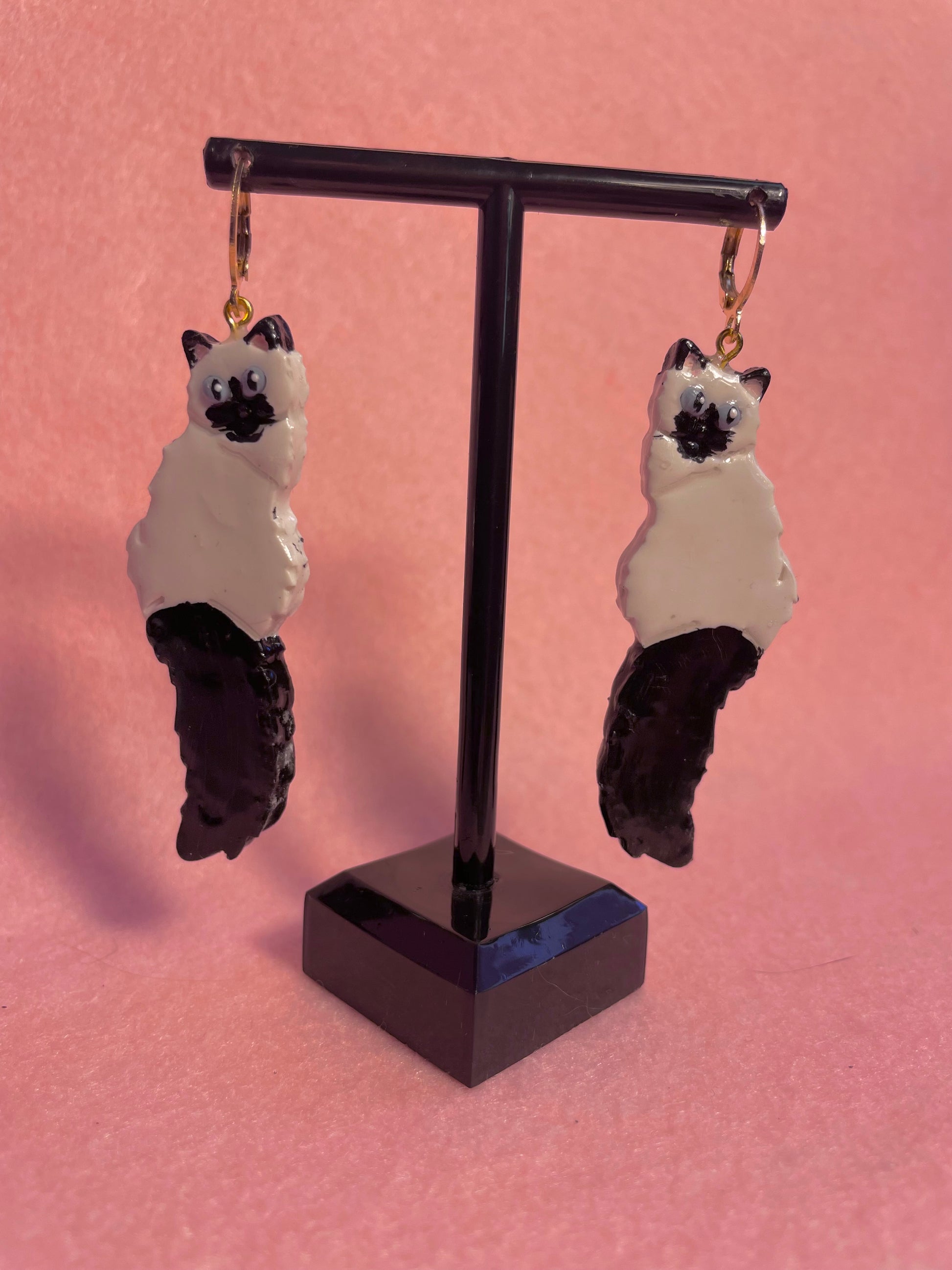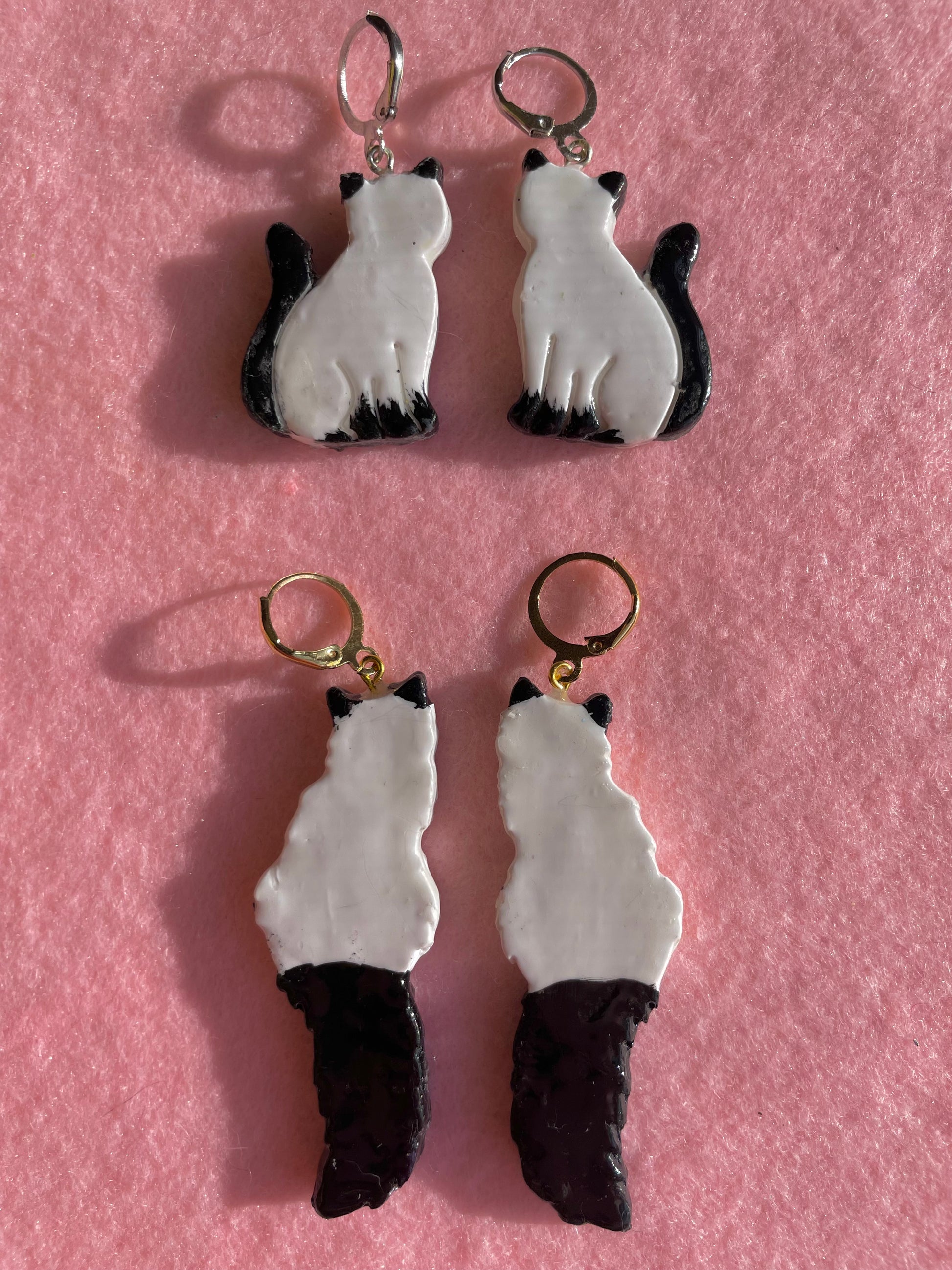 These double-sided polymer clay cats are handmade & handpainted with love by one person! They are durable, lightweight, & topped with glossy protective coat of UV resin.